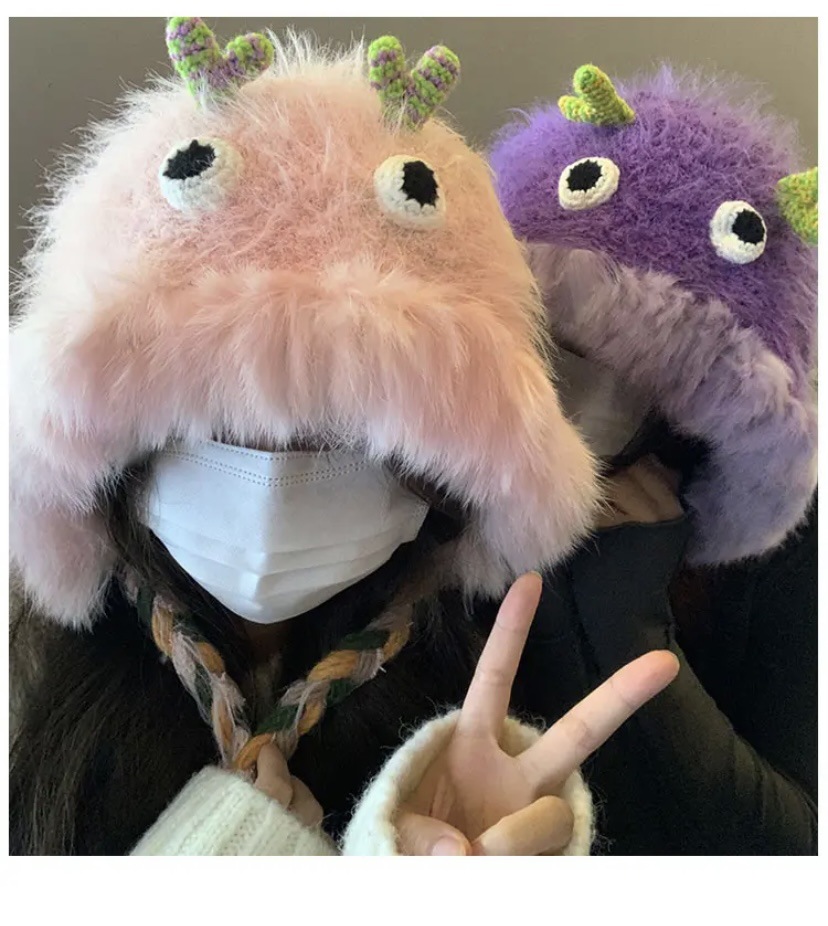 Little Monster Cartoon Furry Hat Warm Woolen Hat Baotou Hat Cute Sweet Travel Girl Heart Autumn Winter